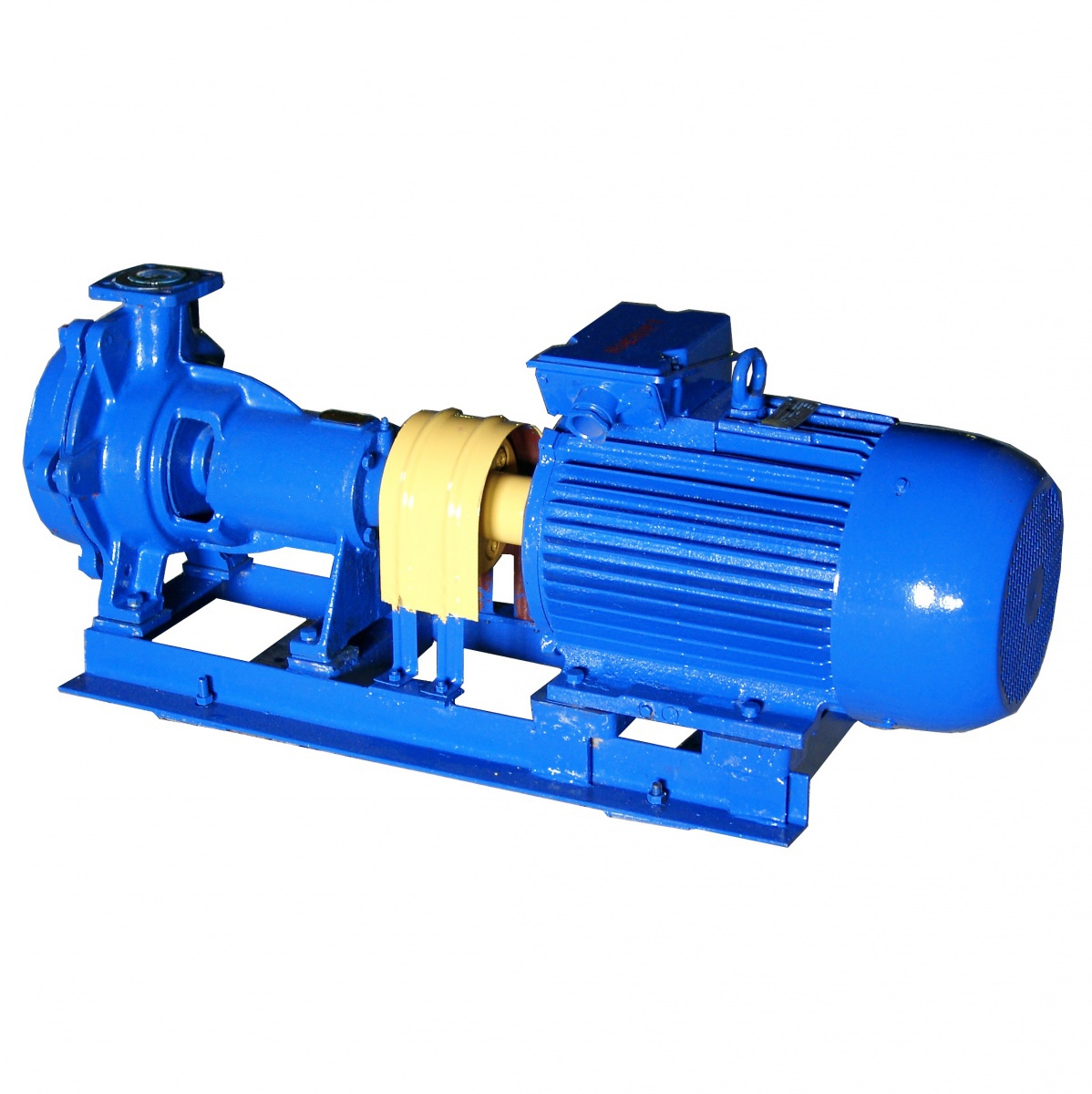 Насосы ЦВК представляют собой горизонтальную двухступенчатую конструкцию, состоящую из насоса и электрического двигателя, закрепленных на общей металлической раме и соединенных муфтой. Ротор устройства вращается вправо, опорой вала являются подшипники, а торцовое уплотнение полностью исключает риск протечек. Между рабочими колесами жидкость передвигается по специальному каналу в верхней части агрегата.