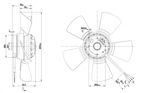Замеры производительности соответствуют ISO 5801 категория А. Для детального уточнения способа замеров, Вам необходимо обратиться к специалистам ebm-papst. Уровень звукового давления со стороны всасывания: LwA по ISO 13347 / LpA с расстоянием 1м от оси вентилятора. Данные действительны только при указанных условиях измерения и могут варьироваться в зависимости от условий установки. При отклонении от стандартной конфигурации, необходимо проверить все значения в собранной установке.