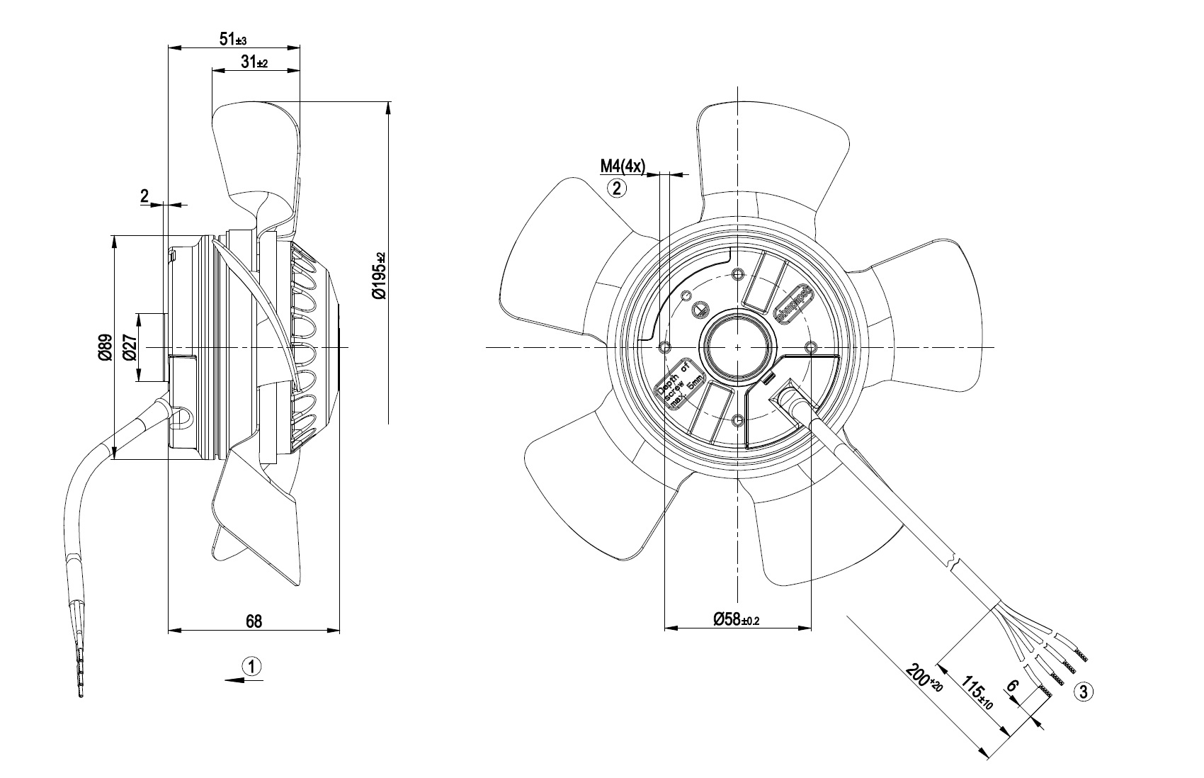 Замеры производительности соответствуют ISO 5801 категория А. Для детального уточнения способа замеров, Вам необходимо обратиться к специалистам ebm-papst. Уровень звукового давления со стороны всасывания: LwA по ISO 13347 / LpA с расстоянием 1м от оси вентилятора. Данные действительны только при указанных условиях измерения и могут варьироваться в зависимости от условий установки. При отклонении от стандартной конфигурации, необходимо проверить все значения в собранной установке.