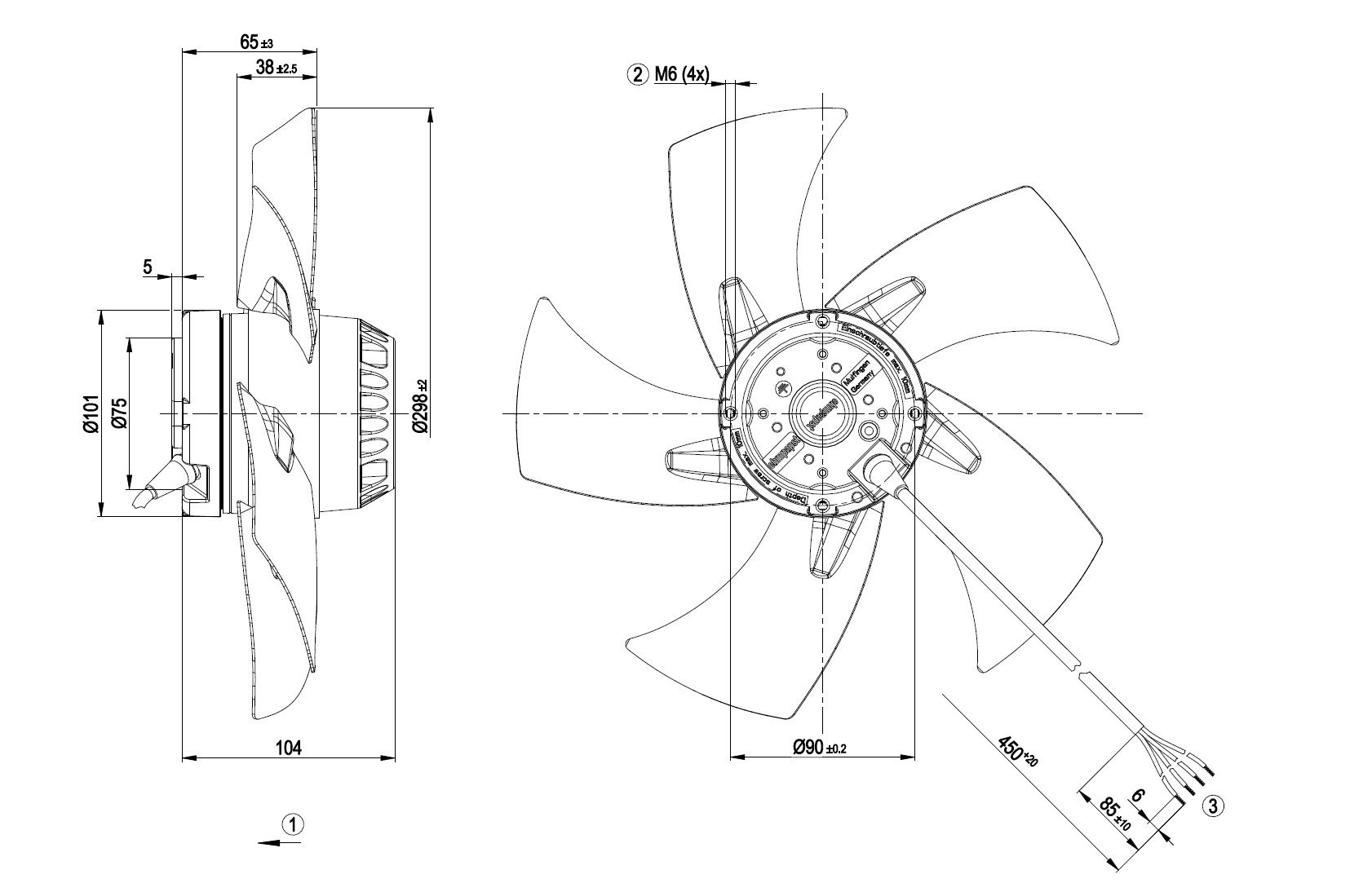 Замеры производительности соответствуют ISO 5801 категория А. Для детального уточнения способа замеров, Вам необходимо обратиться к специалистам ebm-papst. Уровень звукового давления со стороны всасывания: LwA по ISO 13347 / LpA с расстоянием 1м от оси вентилятора. Данные действительны только при указанных условиях измерения и могут варьироваться в зависимости от условий установки. При отклонении от стандартной конфигурации, необходимо проверить все значения в собранной установке.