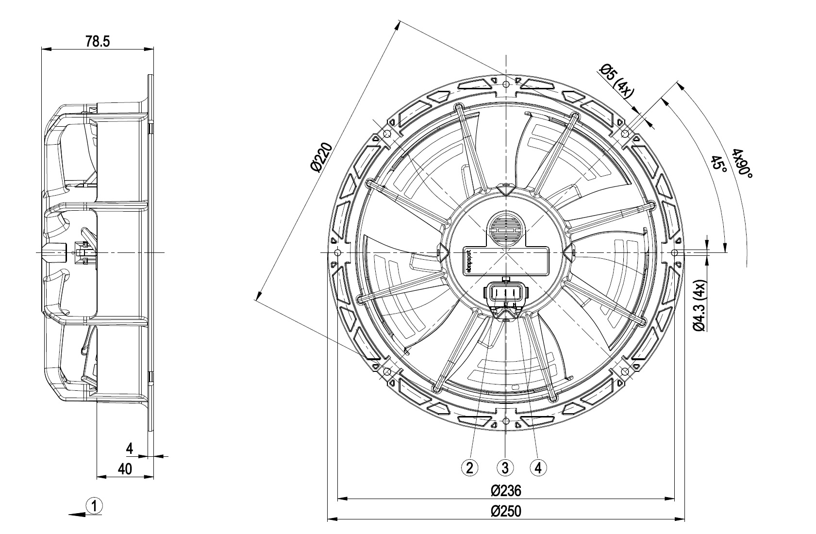 EC осевой вентилятор - ESM серповидные лопасти (S серии) ESM-стенное кольцо